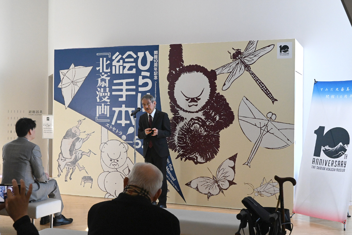 同館では今年、10周年を記念してさまざまな企画展やイベントの開催を予定しています。そして10周年記念展の第一弾が、現在開催中の「ひらけ、絵手本!『北斎漫画』エトセトラ」です。早速、展覧会を見てみましょう。