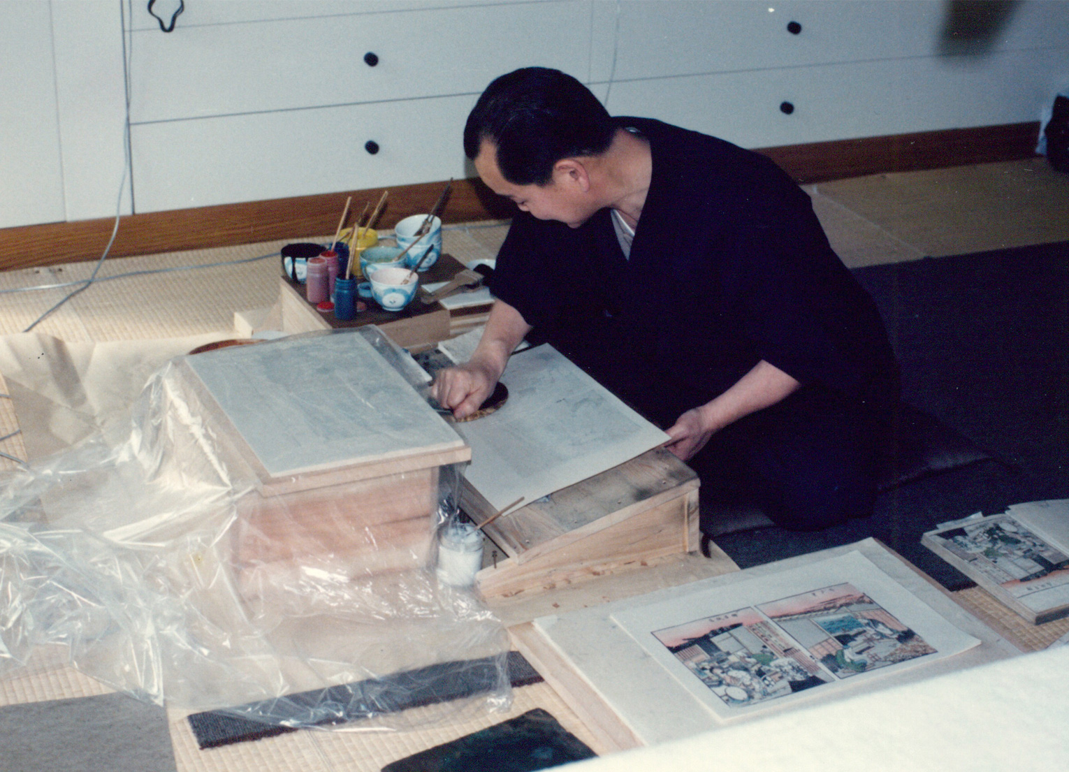 そして日本には、これら浮世絵を制作した彫・摺の技術が、明治・大正と途絶えることなく、職人の手から手へと受け継がれていました。江戸時代から継承された、版木と技——ここに、ボストン美術館所蔵の古版木の再摺プロジェクトがスタート。調査された版木群が日本に持ち運ばれ、アダチ版画研究所所属の職人たちが、浮世絵を再び摺ることになりました。