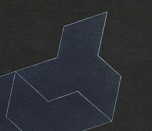 北斎が考案した模様を立体に起こした松永真氏。北斎模様の連続性を利用し、モダンな建造物のように、漆黒の背景に浮かび上がらせました。使用する色の数を最小限に留め、濃淡やグラデーションによる陰影画法で表現された画面は、非常に洗練されています。